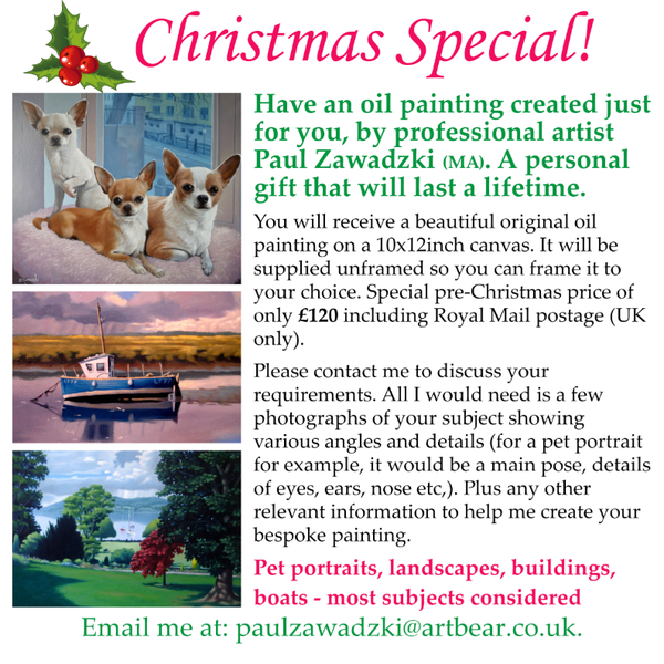 I am always happy to come to a venue and give a talk or demonstration of my techniques to an art group or society. Please contact me for an informal discussion.