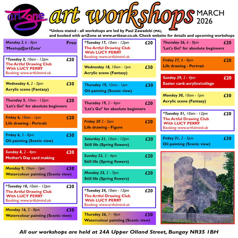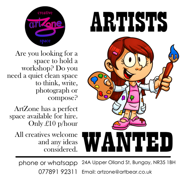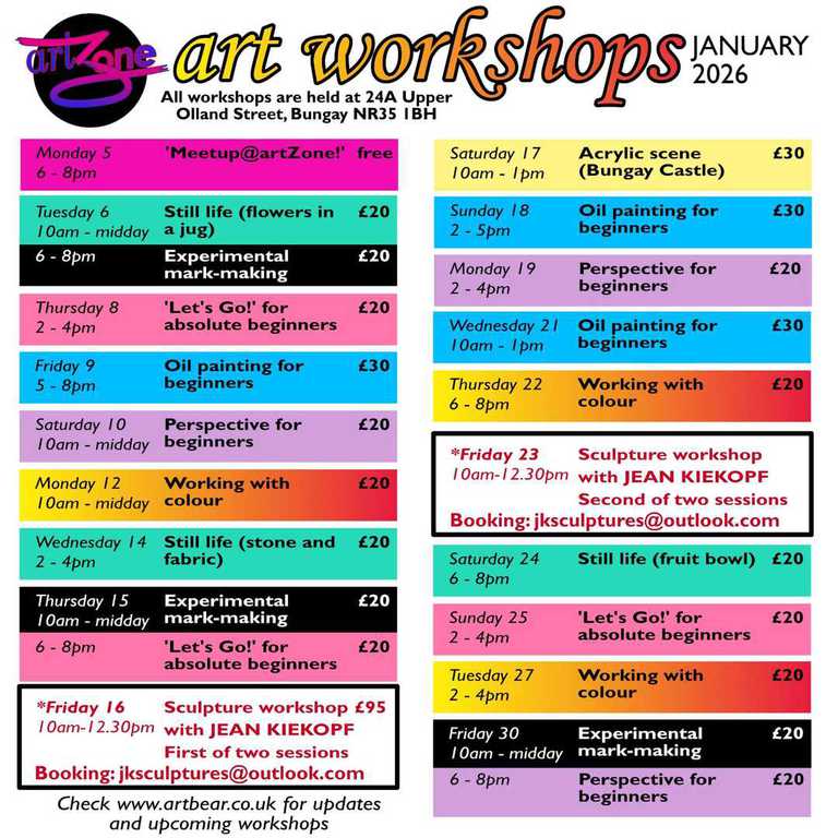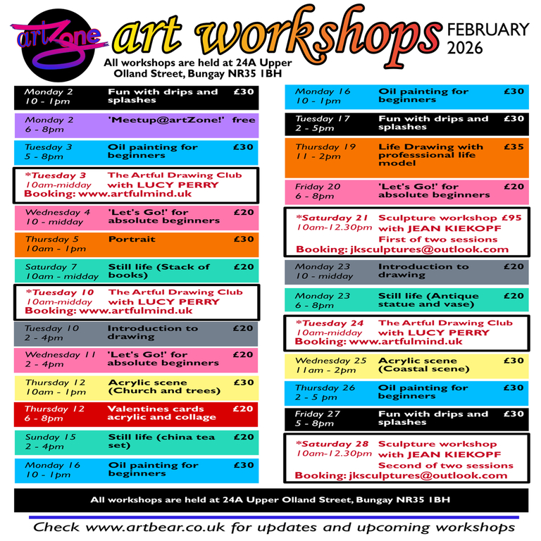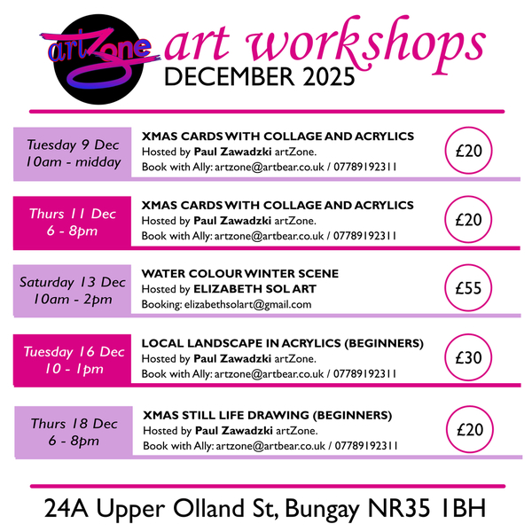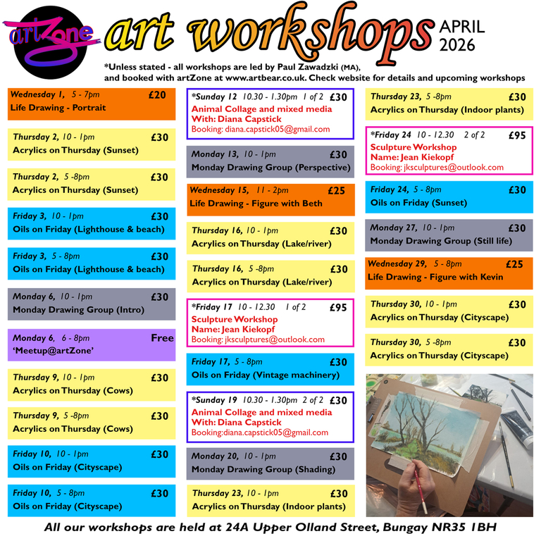 More details and booking info on the artZone page - check Facebook and Instagram for updates.