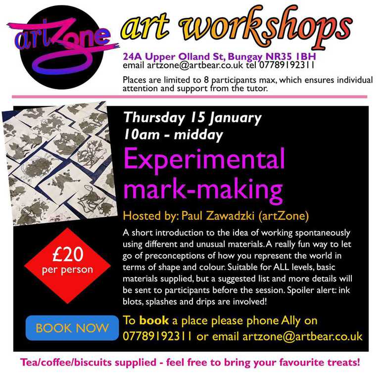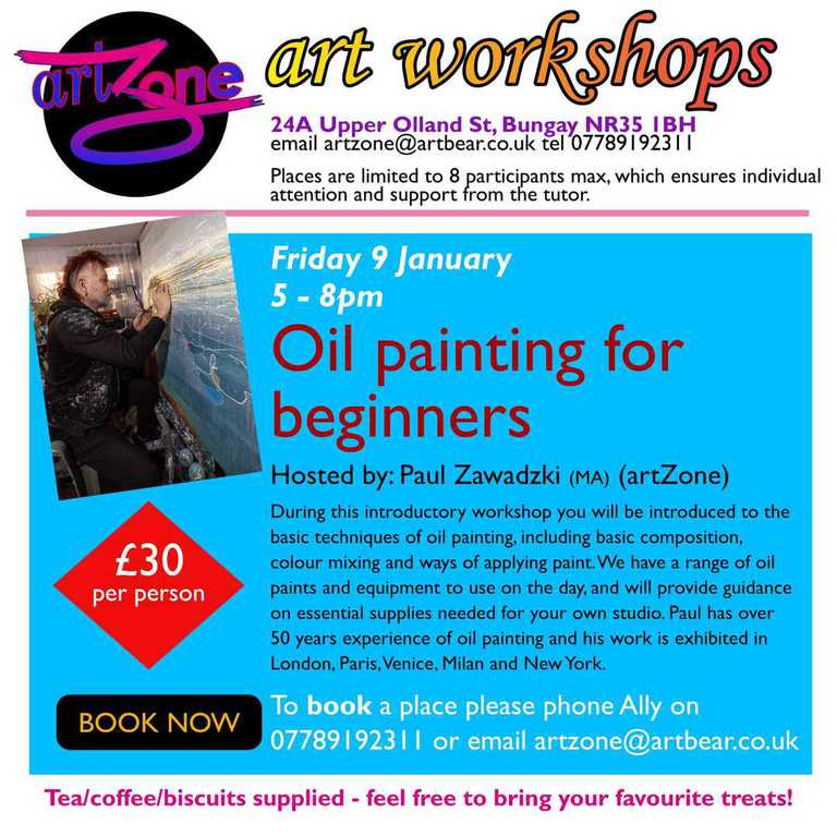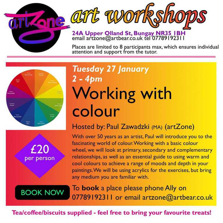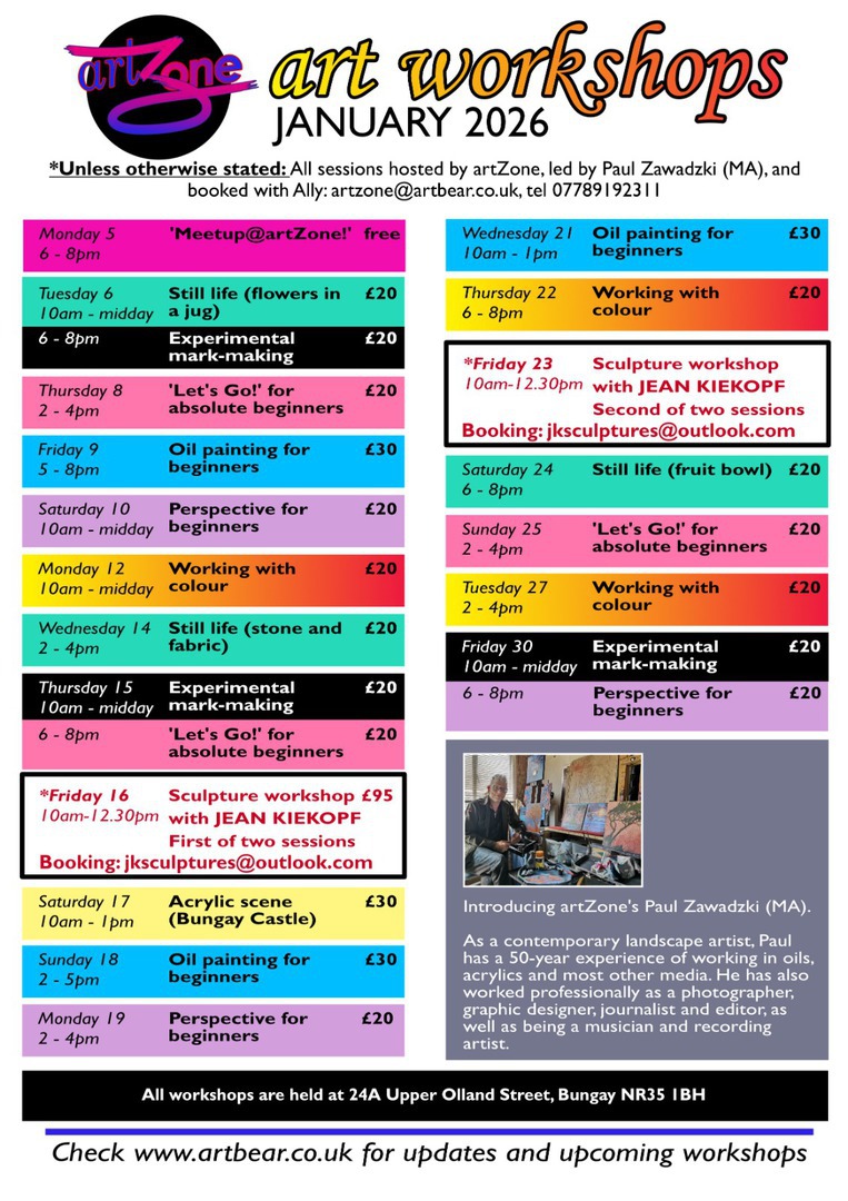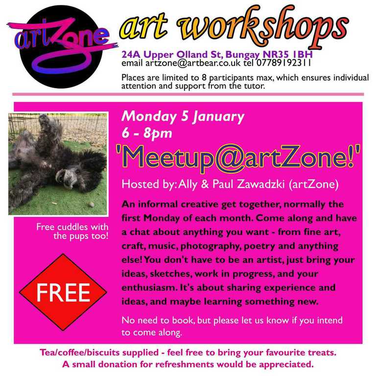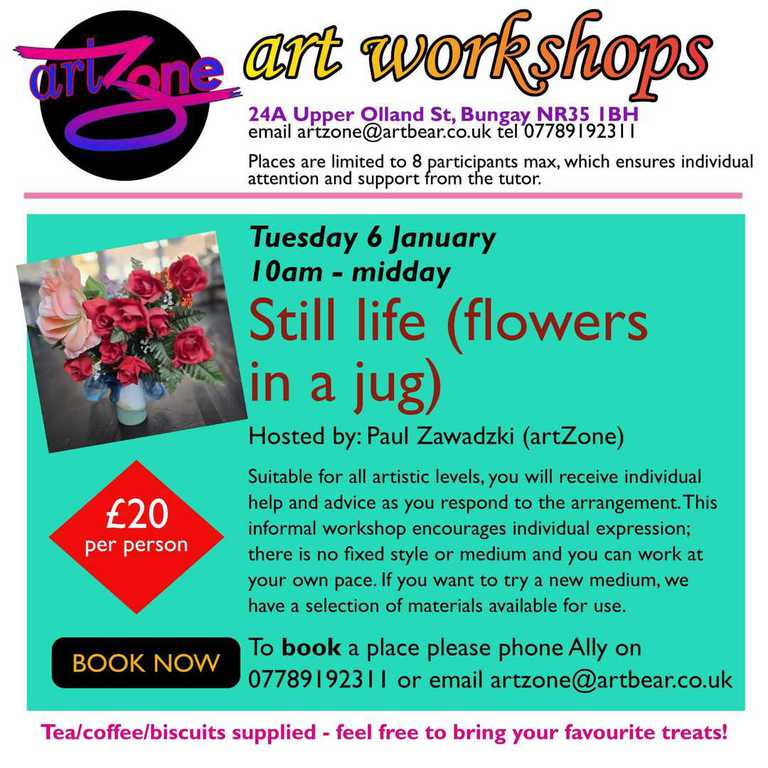 Email Ally on artzone@artbear.co.uk or phone her on 07789192311 to: