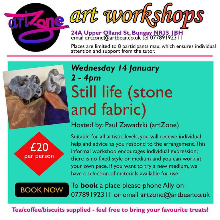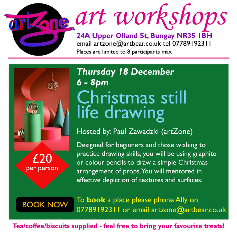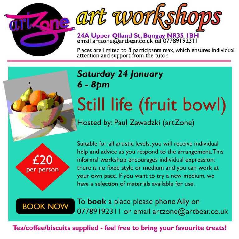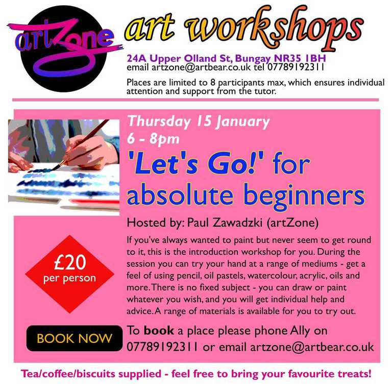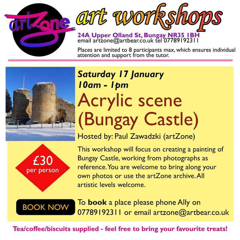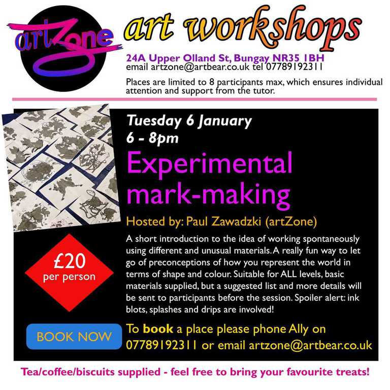 Email Ally on artzone@artbear.co.uk or phone her on 07789192311 to: